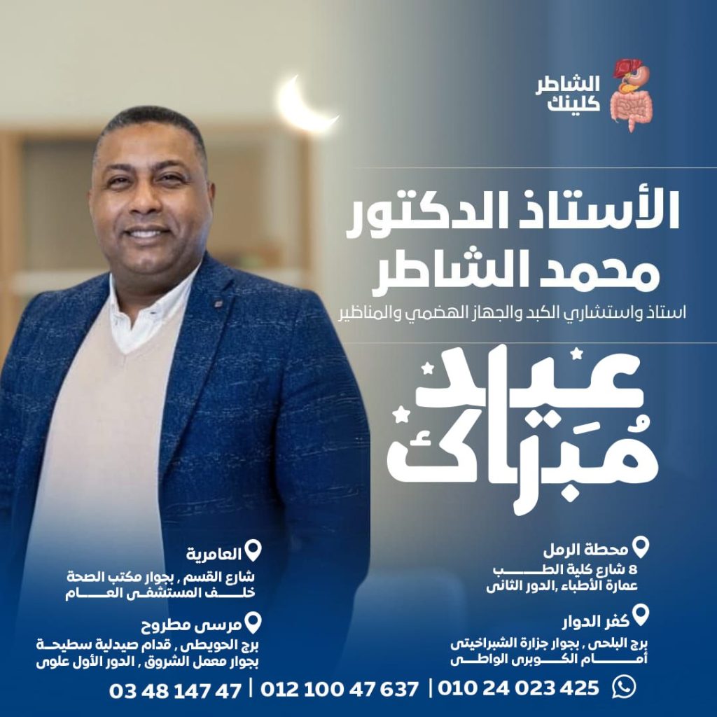 تعد عيادة الأستاذ الدكتور محمد الشاطر من العيادات المتخصصة في تشخيص وعلاج أمراض الكبد والجهاز الهضمي والمناظير، حيث يتم تقديم رعاية طبية متكاملة تعتمد على الخبرة العلمية والتقنيات الطبية الحديثة. يسعى الدكتور إلى تقديم خدمة طبية متميزة تقوم على التشخيص الدقيق والمتابعة المستمرة للحالات المرضية، مع الاهتمام بتقديم أفضل الحلول العلاجية وفقاً لأحدث البروتوكولات الطبية العالمية.